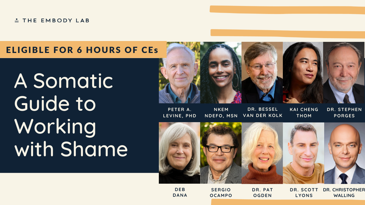 This course explores two interconnected territories: shadow work (reclaiming disowned parts of ourselves) and shame (the painful feeling of being fundamentally flawed). Led by luminaries Nkem Ndefo, Dr. Scott Lyons, Dr. Christopher Walling, Sergio Ocampo, Kai Cheng Thom, and Dr. Peter Levine (developer of Somatic Experiencing®), this training reveals how adaptive survival strategies can hinder deeper self-connection, and how understanding shame's somatic underpinnings opens pathways to healing.