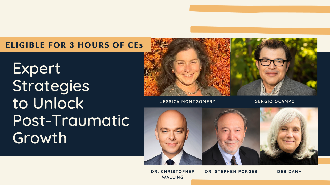Learn from Dr. Christopher Walling, Sergio Ocampo, and Jessica Montgomery, with golden nuggets of wisdom from special guests Dr. Stephen Porges and Deb Dana—pioneers in understanding trauma, nervous system regulation, and post-traumatic growth.